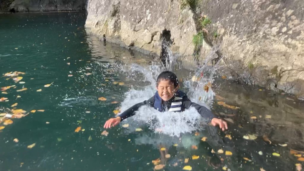 紅葉がすごく綺麗だけど、小学生は紅葉より水に飛び込む方が好きみたいでした笑笑