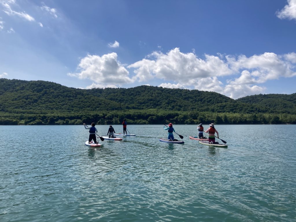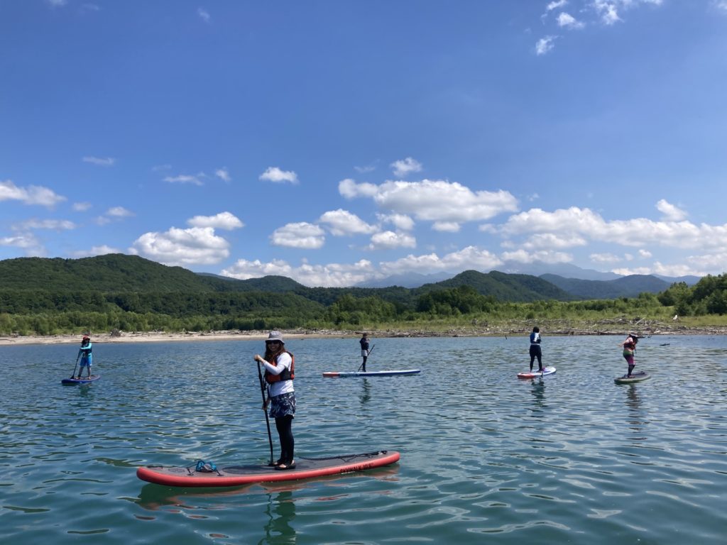 周りは大雪山系の山々があり雄大な景色の中SUPを楽しむことができましたよー😊