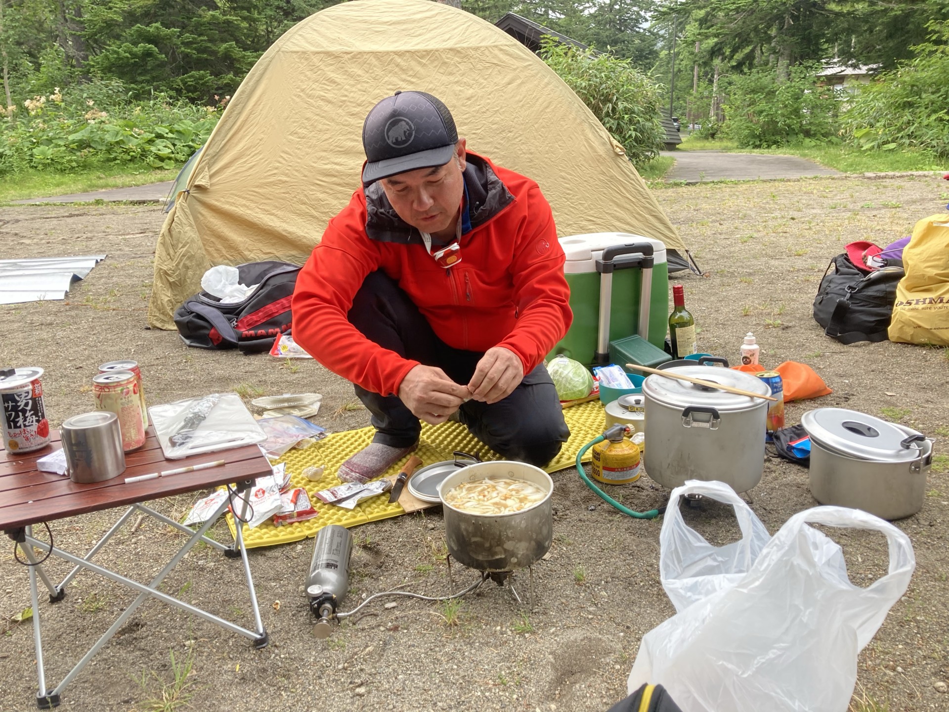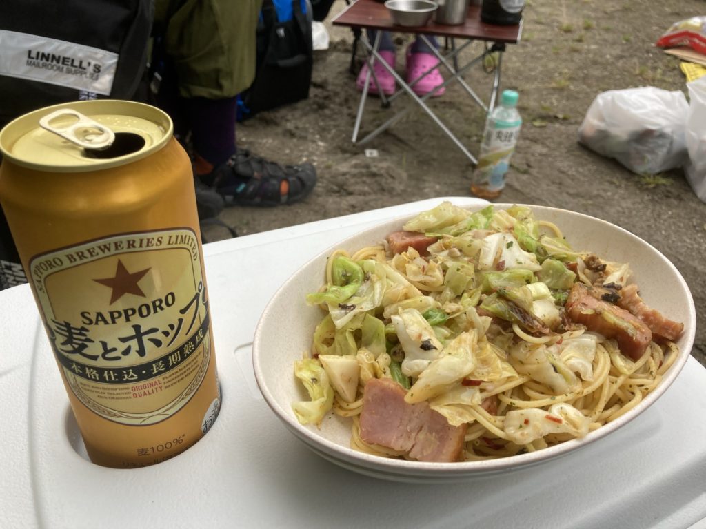 SUPが終わるとそのままキャンプ⛺️山岳ガイド原田さんがご飯作ってくれてます🍚