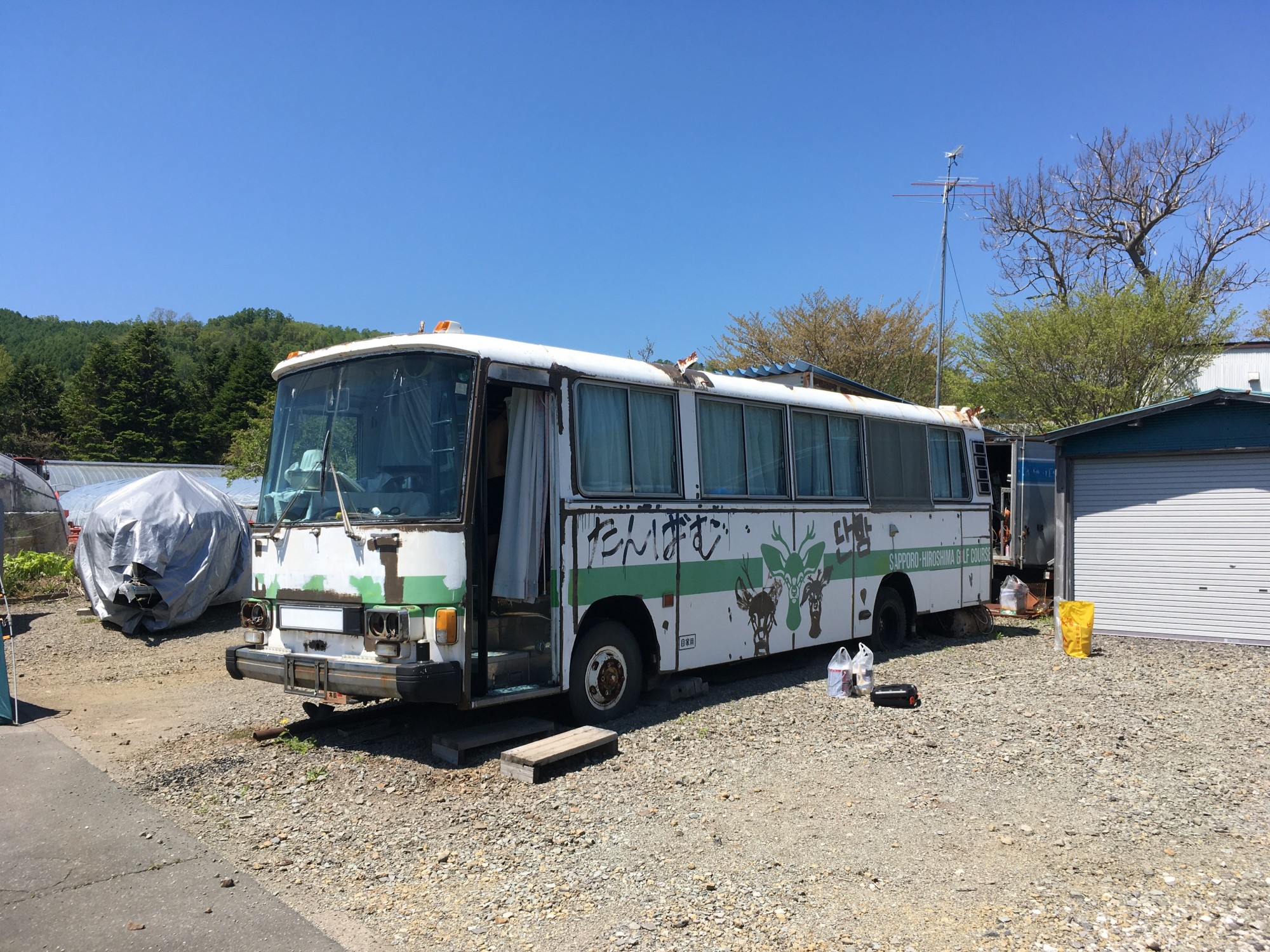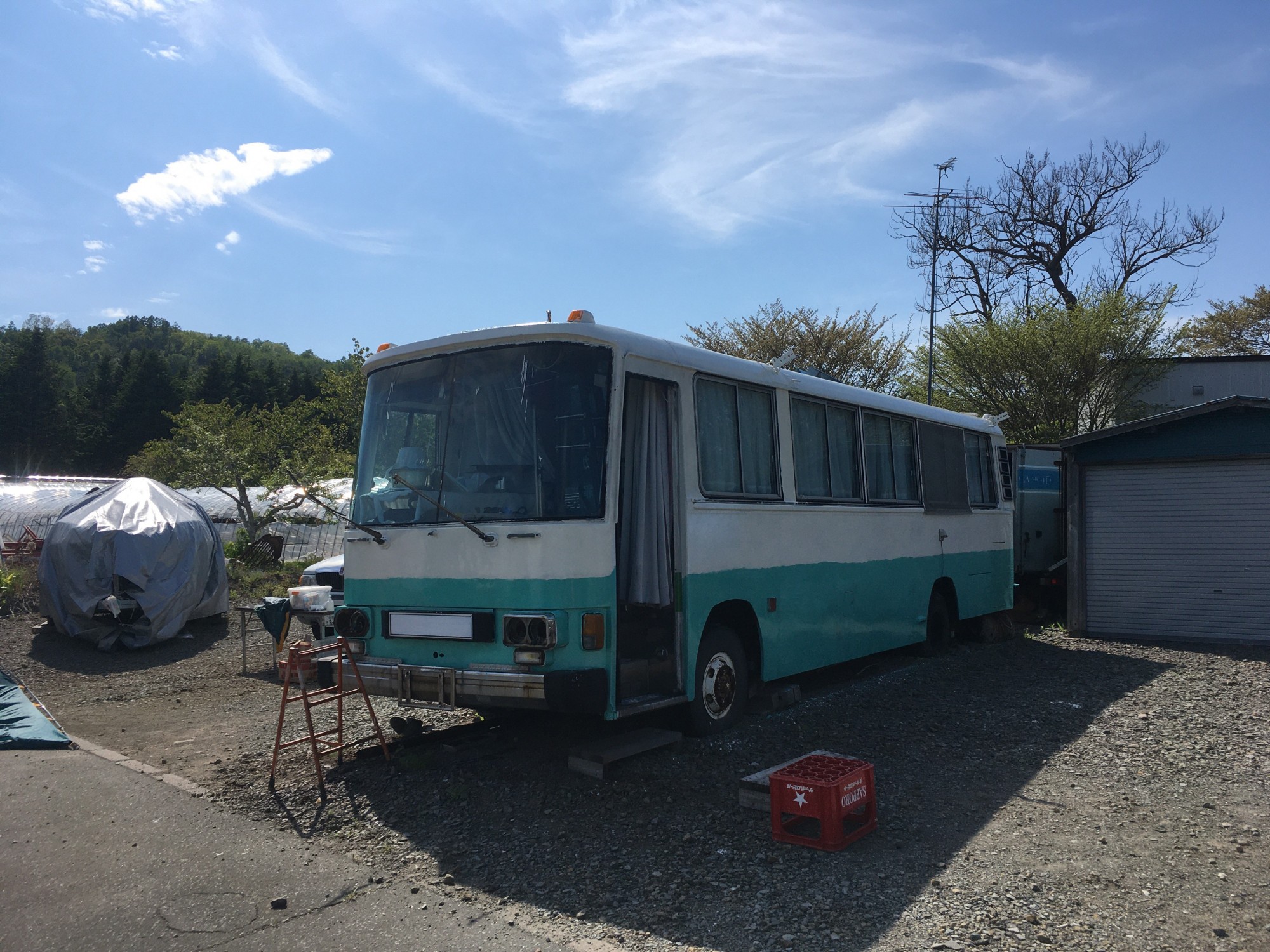 私が勤めている会社の後輩のお爺さんが所有しているバスの色塗りを手伝ってきました😆
