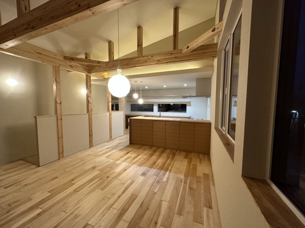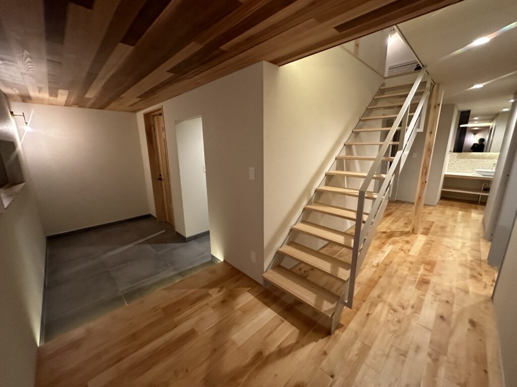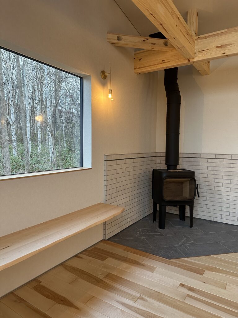 内装はほぼ全て無垢材を使用してオシャレに仕上げ、薪ストーブも入れました🌲🌲ここで火を見ながらゆっくりコーヒーでも飲みませんか?