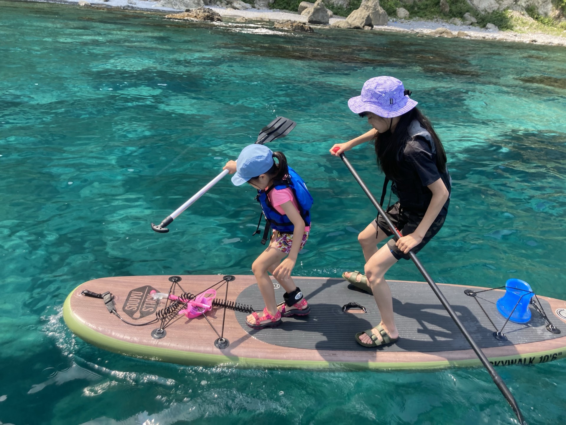 小学6年生と2年生姉妹はこの海に大興奮!2人乗りで漕いだりシュノーケリングしたり楽しんでおりました😆